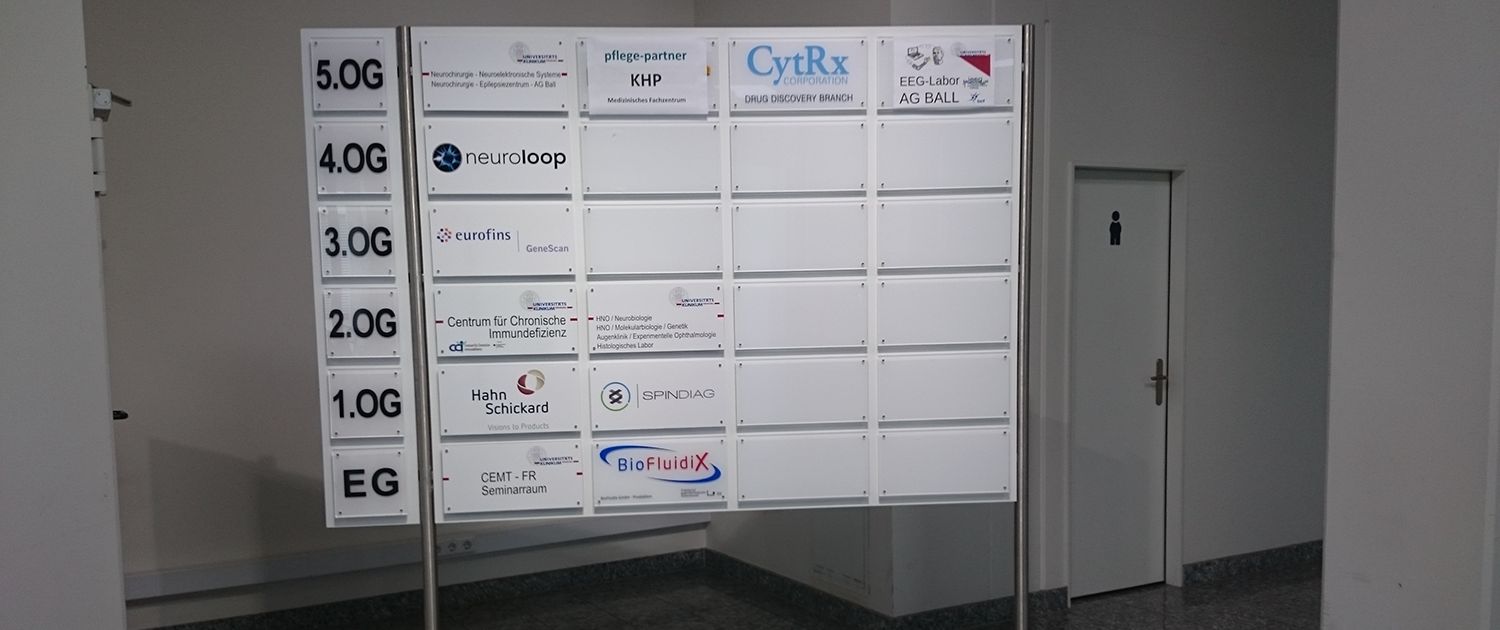 • Orientierung schaffen – Besucher finden intuitiv den Weg – vom Parkplatz über Eingänge bis zu einzelnen Räumen.